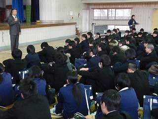 3月8日(火)の3校時、明日に迫った公立高校の学力検査に向けて「激励会」が行われました。受験者に校長先生から激励の言葉をかけていただき、一人ひとりに「受験票」が渡されました。明日は8時に受験校へ集合し、8時50分から学力検査が行われます。今までの努力してきた力を発揮してきてほしいと思います。「力は君の中にある」はずです。