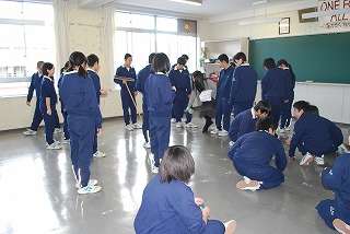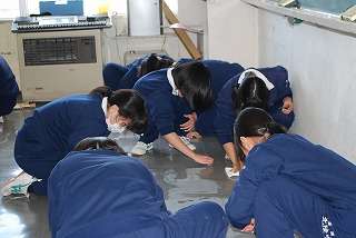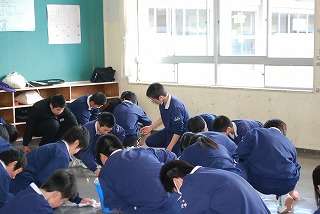 1年間お世話になった教室の床を生徒一人一人がみがきました。