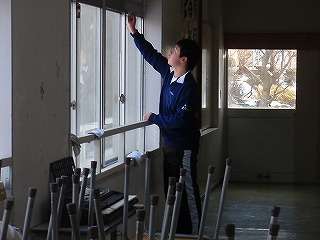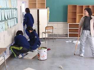 3月9日(火)、1年間お世話になった教室に感謝の気持ちを込めて、進路先が決まっている3年生は、学力検査を受けている仲間の分も含めて自分の教室の床磨き、ワックス塗りをしました。