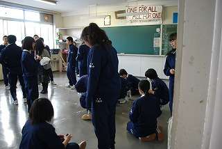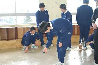 1年間お世話になった教室の床を生徒一人一人がみがきました。