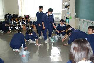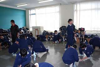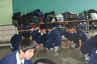 1年間お世話になった教室の床を生徒一人一人がみがきました。