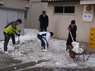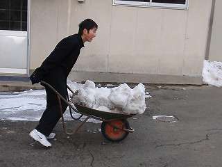 いよいよ卒業式まで4日となりました。昨日公立高校入試を受けてきた生徒が、除雪の手伝いを始めました。3月10日(木)の朝、今朝も3年生の「雪かき隊のボランティア隊」が登場し、雪割りと雪運びをしました。いよいよ卒業まで4日間です。