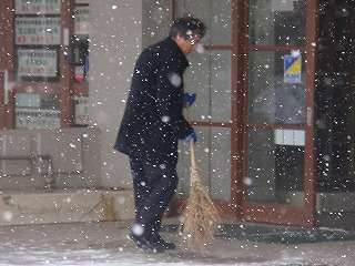 いよいよ卒業式まで3日となりました。この日は朝から雪降りの天気です。雪ベラをかたづけてしまいましたが、再度出動しました。3月11日(金)の朝、今朝も3年生の「雪かき隊のボランティア隊」が登場し、雪かきをしました。いよいよ卒業まで3日間です。