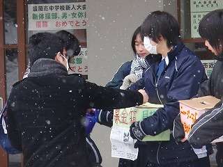 3月3日(木)の朝から「SKET委員会」がニュージーランド大地震の募金活動を始めました。たくさんの日本人が犠牲となったこの災害に生徒会が立ち上がりました。義捐金活動を朝の登校時間に始めました。卒業式まであと3日しかありませんが、たくさんの善意の気持ちを伝えたいと思います。