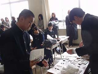 卒業証書は学年代表一人が校長先生からいただいたので、学級に戻って担任の先生から一人ひとりに卒業証書が手渡されました。卒業生の思いは複雑だったと思いますが、満面の笑みで北陵中学校を巣立っていきました。「この学校に入学して良かった」という思いで巣立ってもらうことだけを考えての指導でした。これからは自分の道を自分の力で切り拓いてくれるものと信じています。指導の行き届かないところもたくさんあったとは思いますが、保護者の皆さん、卒業おめでとうございました。そしてありがとうございました。
