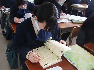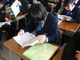 3月11日(金)の2校時、卒業記念品の「卒業アルバム」「卒業文集」「卒業記念DVD」など生徒に渡しました。アルバムや文集に吸い込まれていました。普段学級で見せることのない、「シ〜ン」と言う雰囲気でした。