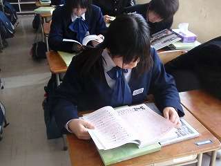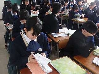 3月11日(金)の2校時、卒業記念品の「卒業アルバム」「卒業文集」「卒業記念DVD」など生徒に渡しました。アルバムや文集に吸い込まれていました。普段学級で見せることのない、「シ〜ン」と言う雰囲気でした。