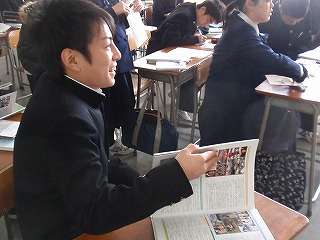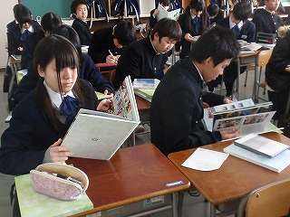 3月11日(金)の2校時、卒業記念品の「卒業アルバム」「卒業文集」「卒業記念DVD」など生徒に渡しました。アルバムや文集に吸い込まれていました。普段学級で見せることのない、「シ〜ン」と言う雰囲気でした。