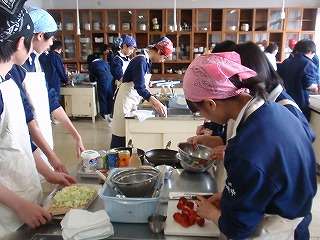 3月3日(木)の4校時、調理室から「賑やかな声」が聞こえてきました。中を覗くと3年6組が調理実習の最中でした。お好み焼きとフルーツヨーグルト作りに取り組んでいました。さすが3年生で「見事な焼き具合のお好み焼き」「おいしそうに盛りつけられたフルーツヨーグルト」を作る班。どうも真っ黒なお好み焼きで悪戦苦闘している班もありました。みんな、和気藹々と実習をしていました。