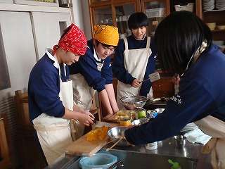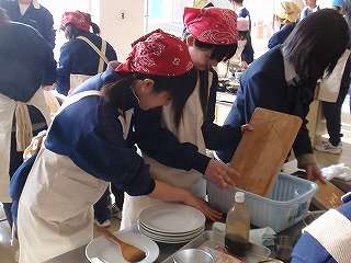 2月25日(金)の4校時、調理室から「賑やかな声」が聞こえてきました。中を覗くと3年1組が調理実習の最中でした。お好み焼きとフルーツヨーグルト作りに取り組んでいました。さすが3年生で「見事な焼き具合のお好み焼き」「おいしそうに盛りつけられたフルーツヨーグルト」を作る班。どうも真っ黒なお好み焼きで悪戦苦闘している班もありました。みんな、和気藹々と実習をしていました。