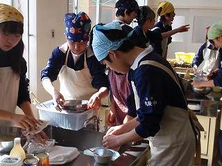 なぜか?調理中に「フルーツヨーグルト」のイチゴをつまみ食いして、盛り合わせる時にイチゴのない「フルーツヨーグルト」の班がありました。どうしてでしょうか?みんな、和気藹々と実習をしていました。