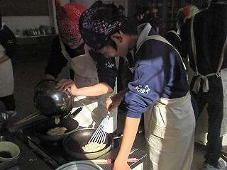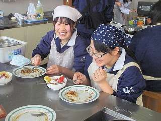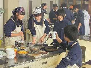 2月15日(火)の5校時、調理室から「賑やかな声」が聞こえてきました。中を覗くと3年4組が調理実習の最中でした。お好み焼きとフルーツヨーグルト作りに取り組んでいました。さすが3年生で「見事な焼き具合のお好み焼き」「おいしそうに盛りつけられたフルーツヨーグルト」を作る班。どうも真っ黒なお好み焼きで悪戦苦闘している班もありました。みんな、和気藹々と実習をしていました。