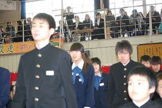 3月15日(火)9:50から「盛岡市立北陵中学校第37回卒業証書授与式」が行われました。3月11日(金)に発生した未曾有の「東日本大震災」の影響で13日(日)の卒業式を2日移しての卒業式になりました。この卒業式のため、1月から合唱練習に取り組み、2月から証書授与の練習を行ってきましたが、この地震の余震を心配し、練習してきた内容を大幅に変更しての実施となりました。いろいろな考えがあるのですが、「中学校の卒業式を自分の人生の節目としたい。」というおもいでした。ひとり一人の証書授与から学年代表の証書授与、旅立ちの部分を在校生、卒業生の合唱の披露なしで行いました。式の最中の余震の対処方法も考えての実施でしたが、式の最中は余震に見舞われることもなく最後までできました。「最後まで実施できた」ことに感謝します。卒業生の思いは複雑だったと思いますが、満面の笑みで北陵中学校を巣立っていきました。「この学校に入学して良かった」という思いで巣立ってもらうことだけを考えての指導でした。これからは自分の道を自分の力で切り拓いてくれるものと信じています。指導の行き届かないところもたくさんあったとは思いますが、保護者の皆さん、卒業おめでとうございました。そしてありがとうございました。