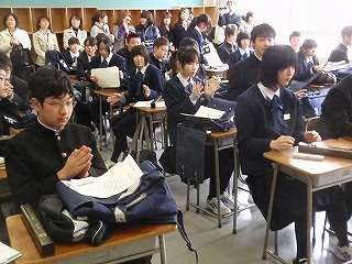 ※3月15日(火)「盛岡市立北陵中学校第37回卒業証書授与式」終了後、学級で担任の先生から卒業証書をもらう3組の生徒の様子です。!