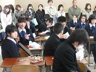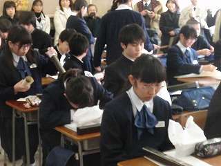 ※3月15日(火)「盛岡市立北陵中学校第37回卒業証書授与式」終了後、学級で担任の先生から卒業証書をもらう4組の生徒の様子です。!!