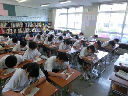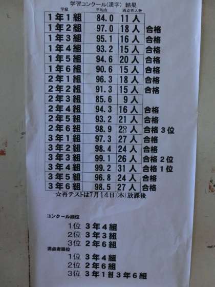 7月12日(火)、今年度第1回目の学習コンクールが開催されました。今回は「漢字」テストで、学習委員会の呼びかけにより取り組みました。学級平均が90点以上が合格と言うことで、全18学級中16学級が一発合格、3年4組は2冠達成です。がんばりました!