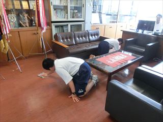 腕をいっぱいに伸ばして、気持ちをこめて拭いています。