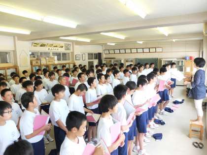1年生が親子でドッジビーで楽しんでいるころ、2年生は学年合唱練習でした。