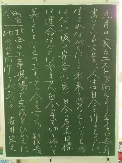 今日の三年生小さな黒板