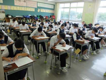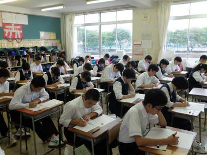 3年生は、9月号の実力テストに真剣に取り組んでいます。