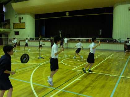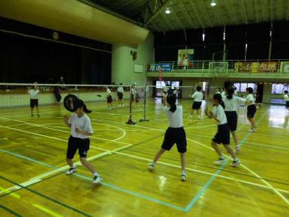 素振りと前後左右のフットワークを組み合わせて、激しく汗をかいています。