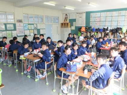 お昼の様子とともに合唱曲を紹介します。 1年1組