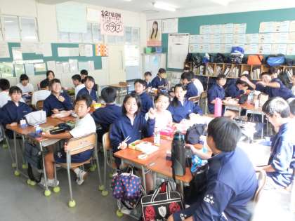 お昼の様子とともに合唱曲を紹介します。 1年2組