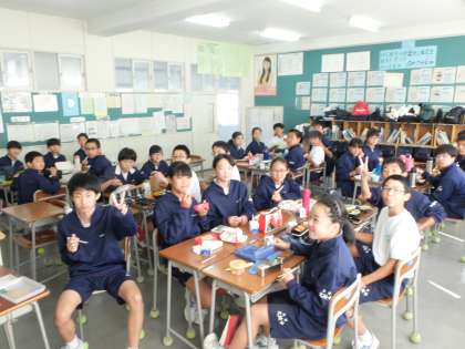 お昼の様子とともに合唱曲を紹介します。 1年3組