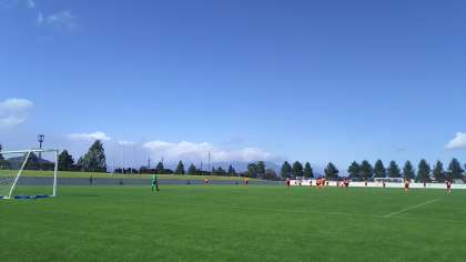 後半3分、縦パスからセンターフォワード11番若松くんがシュート!逆転です。