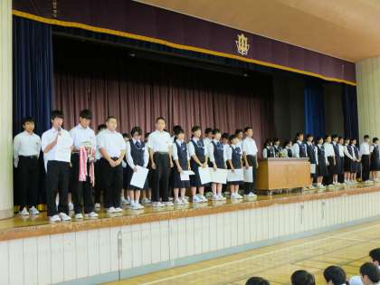 「これからぜひ大切にしてほしいことは、『勝利を目指す』ということよりも『同じ勝利を目指す仲間作り』です。一つの目標に向かって努力しあう仲間がそばにいるということは何よりも大切です。そして仲間とともに目標に突き進んでいくその北陵中学校の良さを、先輩から後輩へずっと引き継いでいってほしいと思います。そうすると10年先も20年先も北陵中学校は仲間を大切に仲間とともに努力する素晴らしい学校のままであると思います。」
