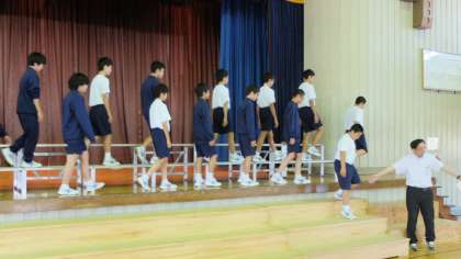 1年生は,学級合唱の発表の入退場の練習もしっかり行っています。