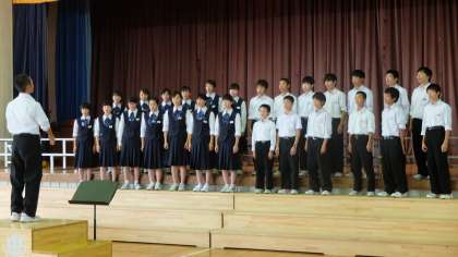 もう少しのどを縦に開いて,朗々と歌おうよ。きっともっといい合唱になると思いますよ。ソプラノ・アルトは男声に遠慮せずにがんがん歌ってほしいです。それが男子の本気の本気を引っ張り出すのではないかな?