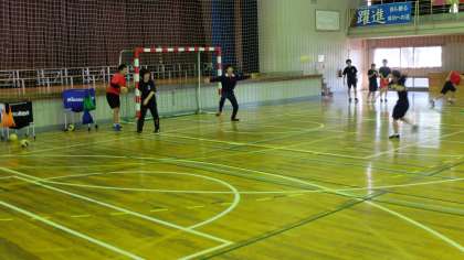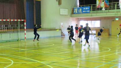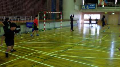 ハンドボール部です。先輩・コーチみんな一緒になって頑張っていますね。