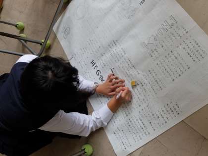 ほとんどの学級が壁新聞づくりに全力を注いでいます。