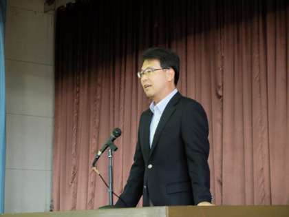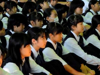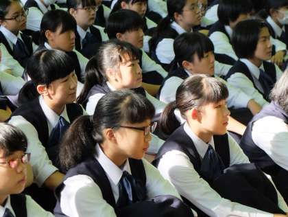 校長先生のお話を生徒たちは真剣に聞いていました。