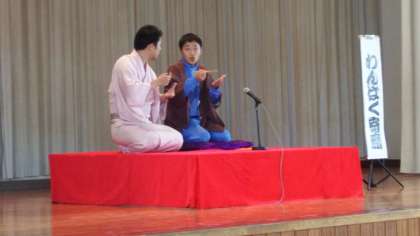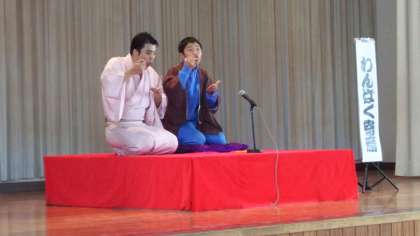 北厨川小学校では、落語家さんがやってきて全校で落語を楽しんでいました。