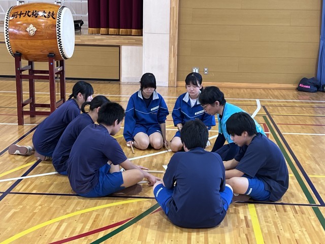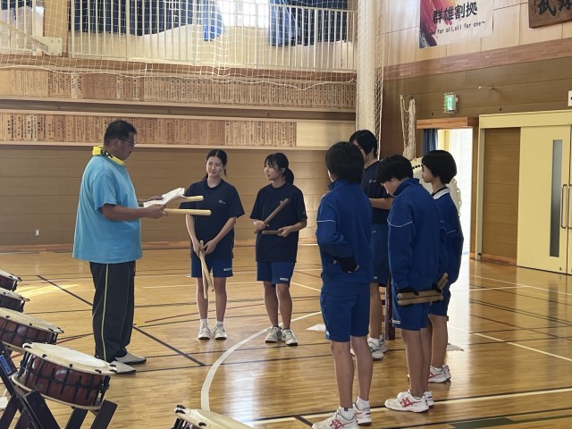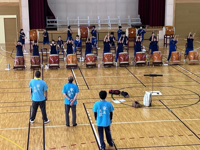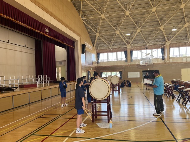 10日に行われる北梅祭へ向け、氷上太鼓の皆さんに技術指導をしていただきました。