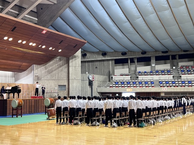 明日の本番に向け、県営体育館でリハーサルを行いました。