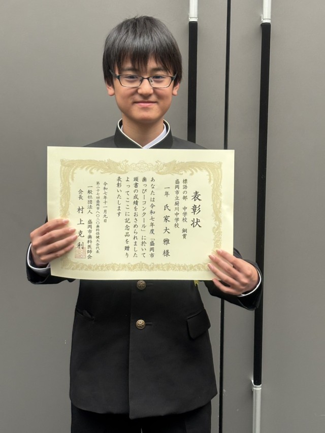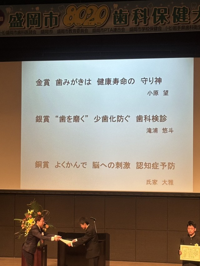 盛岡市歯っぴーコンクールで1年の氏家 大雅さんが銅賞を受賞しました。