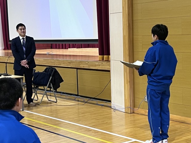 生徒会長の今松さんがお礼の言葉の中で、私たちも全校のためになるような活動をしていけるよう頑張ります。とのメッセージを送りました。