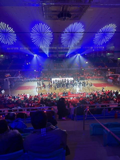 最近ブルズの試合には平均で2000人を超える入場者数とのことで、たくさんの方々の前で演奏するとても価値ある機会となりました。