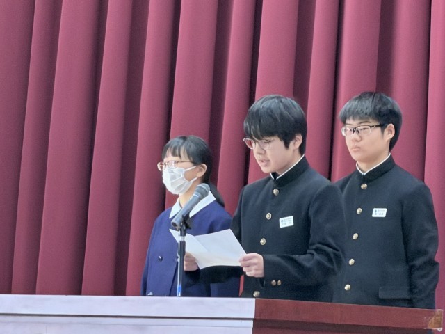 各学年生徒会の代表の挨拶には、来年度に向けた決意やそれぞれに臨むことが話されました。