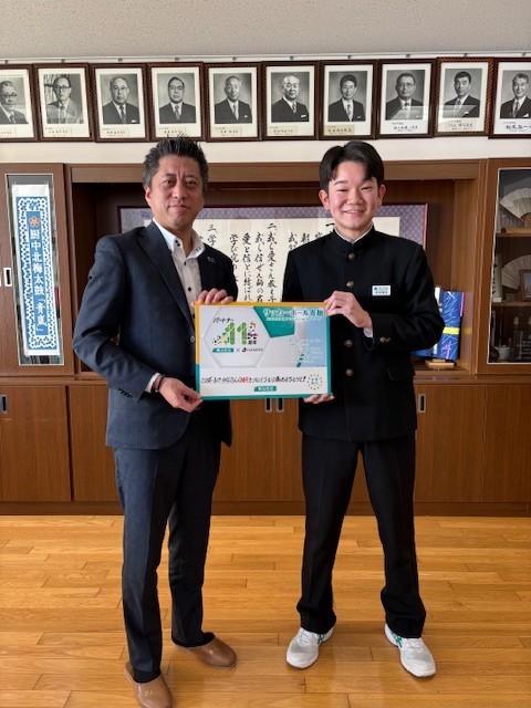 代表として3年2組 祝田陽翔さんが受け取りました。