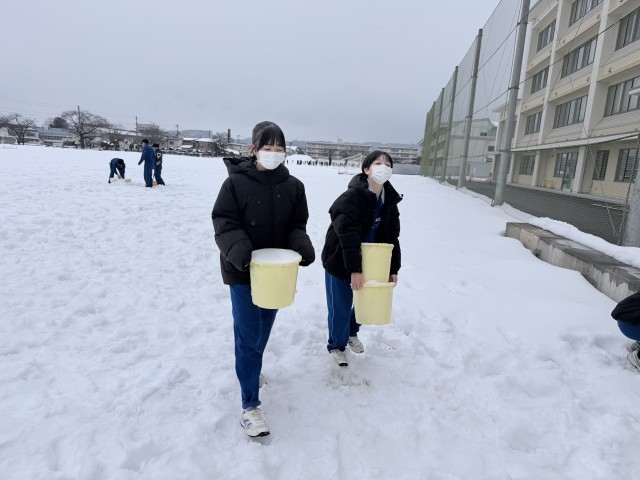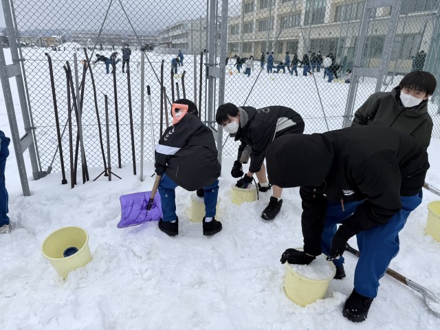 青山雪あかりの灯籠作りに阿久さんの生徒が参加してくれました。