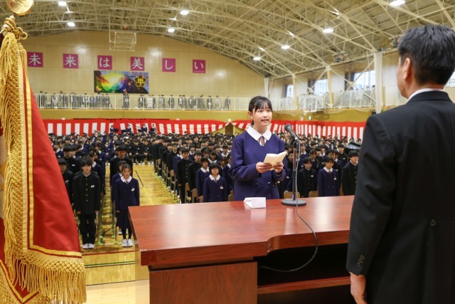 新入生代表の北村 花さんから、中学校で頑張りたいことを発表してくれました。とても立派でした。