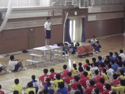 今週末に行われる市中総体で厨川旋風を巻き起こす選手たちが、応援委員会のリーダーシップの下、お互いの激励を行いました。それぞれの部長やキャプテンから決意表明があり、各部とも期待ができます。