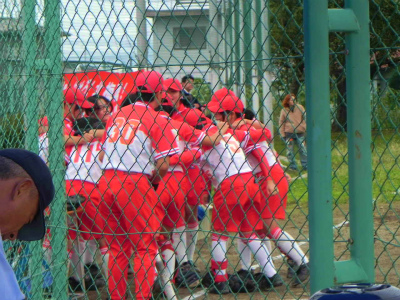 市中新人戦ソフトボール競技は、大宮中グラウンドで準決勝を行いました。厨中は、雨の中でしたが、攻守にがんばり、14:4で松園中に勝利。県大会出場を決め、23日に行われることになった決勝に駒を進めました。ついに県大会です。そして、優勝を目指しましょう!!やったぞ厨中!!