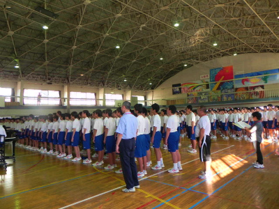 生徒集会を行いました。ジュニアオリンピックが12月に開催されますが、ハンドボール7名、バレーボールで2名が岩手県選抜でがんばります。
