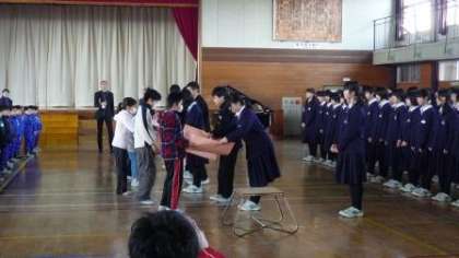 3月8日の朝、厨中1年生と大新小学校の全校生徒が集まって、大新小学校体育館でお別れ会が開かれました。朝早くに集まって練習した『大地讃頌』は今までで最高の合唱でした。各学年へのメッセージも送り、1年間の感謝の気持ちを伝えることができたと思います。大新小の皆さん、ありがとうございました!!