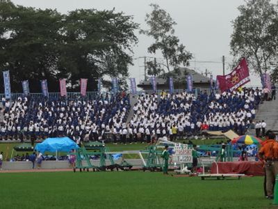 今日、市中陸上が行われました。時折雨が降り、多少肌寒さも感じるようなコンディションでしたが、盛岡市内の各中学校の生徒が運動公園陸上競技場に集結し、各校共に工夫を凝らした素晴らしい応援の中、夏休みのうだるような暑さの中、この日に向けて練習をしてきた成果を出すべく、熱戦が繰り広げられました。その結果、本校は男子総合第2位、女子総合第4位で大会を終えました。この夏、生徒一人一人が自分に与えられた役割に対して真剣に向き合い、取り組んだ結果です。大会の詳しい様子についてはこの後のHPでお知らせしていきたいと考えています。